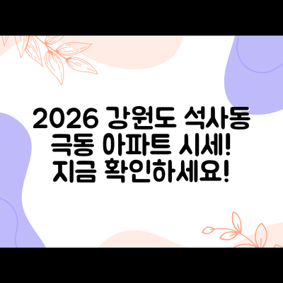 안녕하세요, 여러분! 최근 강원도 춘천시 석사동 극동 아파트의 시세 변화에 대해 이야기해보려고 해요. 2026년 2월 시세에 대한 정보는 물론, 이 아파트 주변의 개발 계획에 대해서도 살펴보겠습니다. 그러면 어떤 변화가 우리 삶에 영향을 미칠 수 있을지 궁금하시죠?