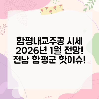 여러분, 아파트 투자에 대해 고민하고 계신가요? 2026년 1월 전라남도 함평군 함평읍의 함평내교주공 아파트 시세는 어떤 변화를 겪을까요? 투자 계획을 세우는 데 있어서 시세 파악은 정말 중요한 첫걸음입니다.